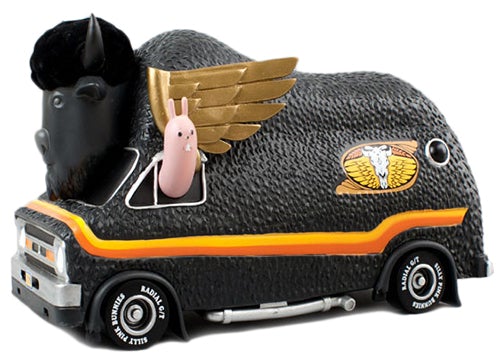 The Bison van stretches 9 inches across and features a textured body as well as a flocked head. The sides and back of the van feature artwork and designs from Jeremy and the driver's side window has his popular silly pink bunny character popping out to say hello.