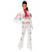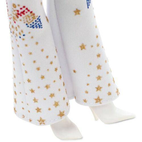 When Elvis Presley emerged on the music scene, he introduced the world to his unique sound and signature moves. Barbie honors the legendary “King of Rock and Roll” with an Elvis Presley Barbie doll featuring a slick pompadour ponytail and wearing an outfit inspired by his iconic “American Eagle” jumpsuit. Like the original he wore during concerts, the outfit is emblazoned with red, gold and blue sparkling eagles, has an attached cape, red scarf, belt and bell-bottoms. With a doll stand, Certificate of Authenticity and packaging that’s ideal for display, Elvis Presley Barbie doll makes a great gift for fans and collectors. Doll cannot stand alone. Colors and decorations may vary.