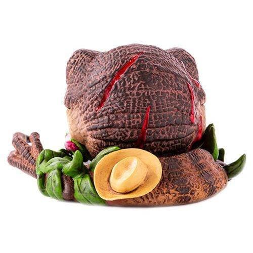 Invaders from Mondoida! They've come from the planet Mondoida to make friends and eat snacks. Too bad their true form is too gross to look at! That's why they've taken the forms of humankind's favorite pop culture icons. They just don't, uh, always get it right. They're Mondoids! This one takes the form of a raptor, from the blockbuster Jurassic Park! She's comin at ya from the foliage, drooling to show you she's not only a clever girl, but a hungry one too. Mondoids are vinyl/pvc figures that feature interchangeable heads that you can mix and match with most other Mondoids. Measures roughly 2 1/4-inches tall.